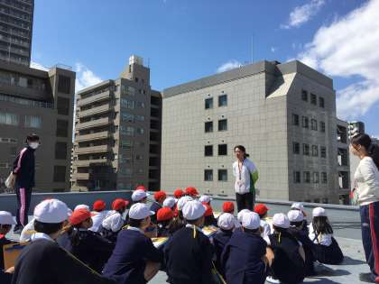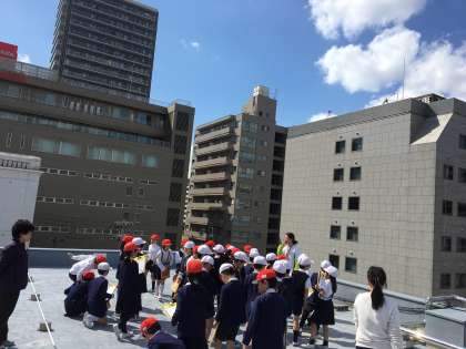 3年生は今日は、北校舎の屋上へ上がって東西南北にある建物を観察しました。