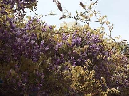 藤棚の藤が咲いています。北校舎での学習がなくなったので少し寂しそうです。