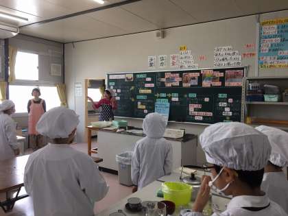 5年生は、家庭科でお茶のれ方を学習しました。家庭科室は、プレハブ校舎に移動しました。新しい家庭科室で学習します。お茶の入れ方を学んでおうちでも実践してくれることでしょう。