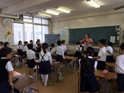 役割読みをしたり、ゲームをしたりして工夫された英語タイムが毎週行われています。