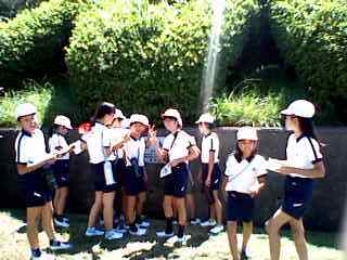 船に乗るまで時間があるので、初のオリエンテーリングをしています。グループで海洋センター周辺のクイズを探して答えています。