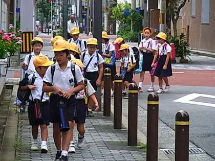 朝の集団登校から、低学年に気を配って元気に安全に集団登校ができました。