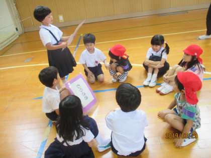 輪になって名前を教えあい、グループごとに楽しく遊びました。