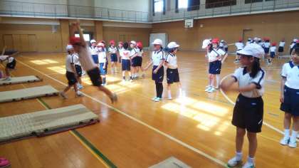 体育の時間、立ち幅跳びの