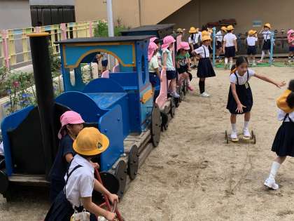 今日は、2年生のスマイルタイムでした。幼稚園庭でさくら組さんと仲良く交流できました。