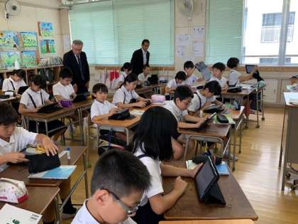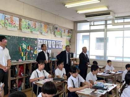 今日は、本校の元校長先生の山本先生、中辻先生そして大阪市の元校長先生村崎先生が来校されました。本校が取り組んでいるICT教育について関心を持たれ、5年生の授業も参観されました。滝川の子ども達は久しぶりの再会で嬉しそうでした。元校長先生方は、児童の授業態度や教職員の熱心な指導に大変感心されていました。