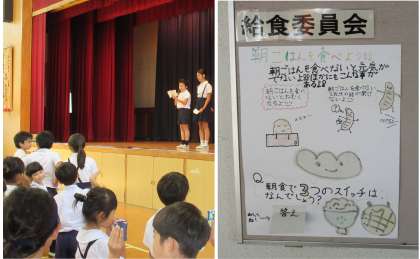 「栄養バランスのよい朝ごはんを食べて、元気に夏休みを過ごそう!」というテーマで、来週3日間、給食委員会の児童が呼びかけなどの取り組みを行います。