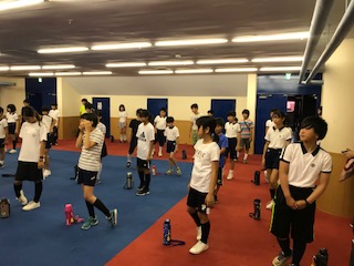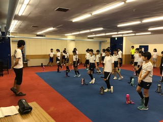 雨天のため室内で朝の集いです。