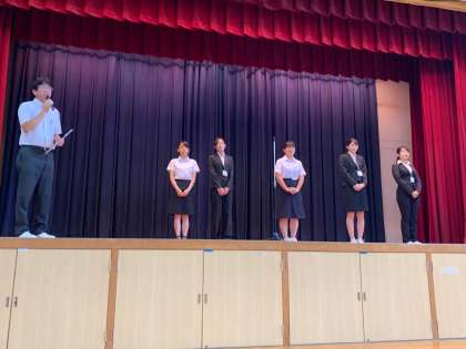 児童朝会がありました。校長先生からは、防災の日についてのお話がありました。また、教育実習生さんと学生ボランティアさんの紹介がありました。