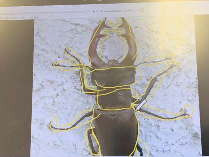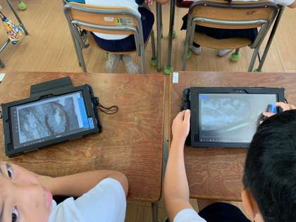理科の授業では、タブレットをつかって昆虫の観察をしていました。マーキング機能を使うことで足の様子や体の様子を詳しく観察することができます。