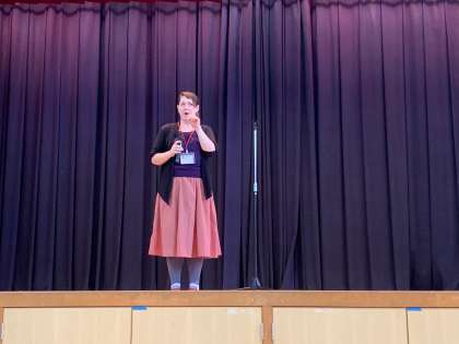 児童朝会がありました。校長先生からは「努力」のお話がありました。また、今日からは新しく来られたC−NETのミッシェル先生の紹介もありました。