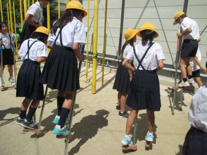 真夏のような暑さが続いています。それでも、休み時間になると運動場へ行き遊ぶ児童は多いです。今、4年生では、竹馬で遊ぶ児童が増えてきています。年少のころ以来という子もいますが、毎日することで少しずつ距離がのびてきて、それをうれしそうに報告してくれます。児童は、少しの時間でも、遊ぶ場所があるとうまく遊ぶものだなと、感心してしまいます。