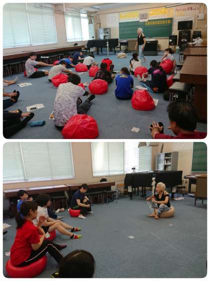 放課後、教職員のバランスボール研修会をしました。講師にソネ ジュンコ先生をお迎えし、バランスボールを使い、体幹を保ち、子どもが楽しみながら正しい姿勢ができるような方法を教えていただきました。