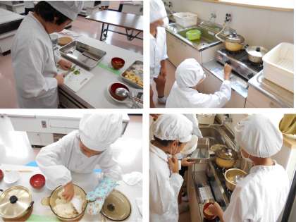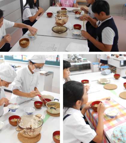 調理実習では、煮干しでだしを取ったみそ汁もお鍋で炊いたご飯もとてもおいしくできました。