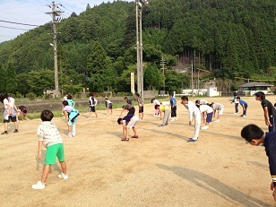 朝の集いのゲームは、バランスゲーム。片足で