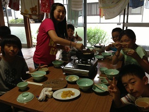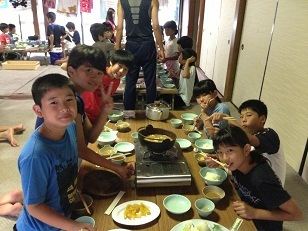 前平鍋、各班に鍋奉行が誕生し、上手に順番通り煮て
