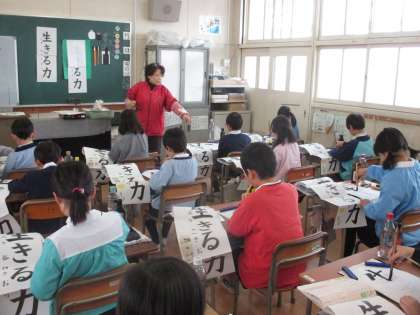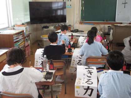 3年生は年始の書初め大会に向けて、長半紙に書く習字を行いました!