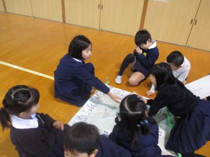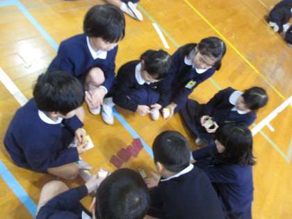 3年生リーダーのもと、1・2・3年生が縦割り班に分かれて班ごとの