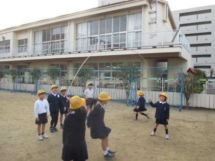遊びに取り組みます。今日は、外遊びチームは大繩とびと花いちもんめ、