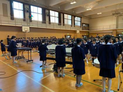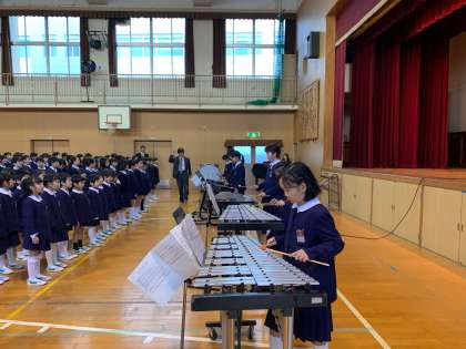 終業式がありました。器楽・ダンスクラブのみなさんが大阪市歌と校歌を演奏してくれました。大きな声で元気に歌うことができました。
