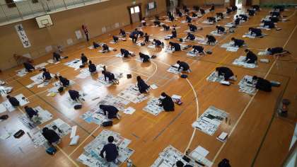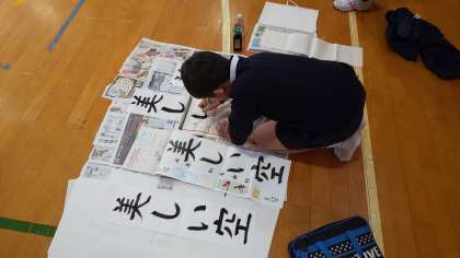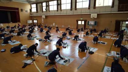 5,6年生は、講堂で書き初めをしました。とても集中して書くことができました。