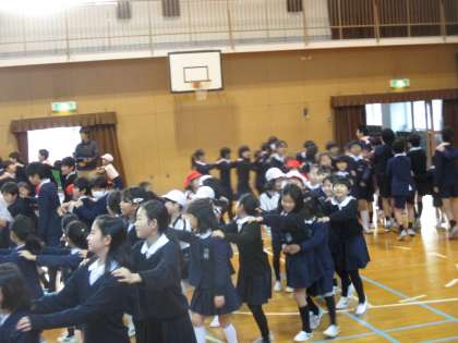 初めての児童集会は、「じゃんけん列車」をしました!