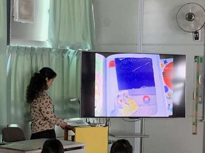 新年あけてはじめての読み聞かせを昨日と今日していただきました。教室は静かな集中した時間が流れていました。