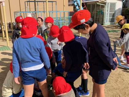 スマイルタイムがありました。2年生と4年生が交流しました。外は寒かったですがあたたかい場面が多くみられました。