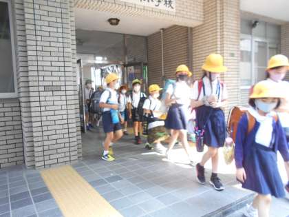 15日間の夏休みを終えて2学期がスタートしました。夏真っ盛りの暑さでしたが、どの教室も、一緒に学び遊べることの喜びを感じさせるような落ち着いた学習態度でした。この日は初めて1年生が分団子ども会の教室に5・6年生の班長と一緒に行き、分団下校訓練を行いました。2学期からは、ふれあい班(1年〜6年までのたてわり班)での活動も始まります。たくさんの笑顔が見られそうです。