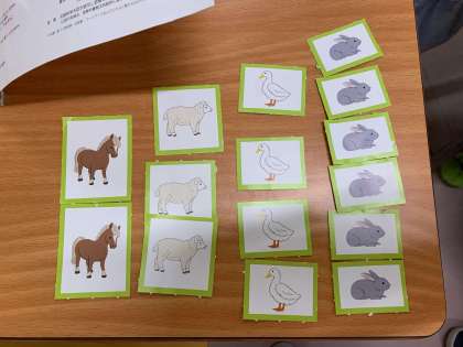 教科書の挿絵を見ながら、広場にいる動物たちの数を比べたいとき、