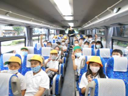 5年生が、元気に林間学習に出発しました。今日から一泊二日、天川村で自然にふれあいながら、友だちと共に生活する喜びを味わってきます。