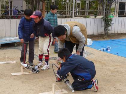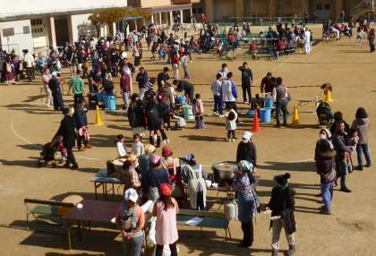 暖かい陽の光を感じながら滝川地域の餅つき大会が学校で実施されました。