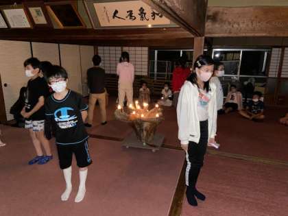 雨で足元が悪いためキャンドルファイヤーが始まりました。