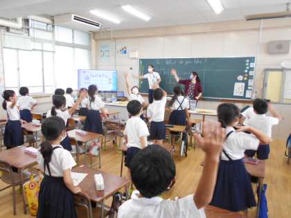 毎週月曜日と木曜日は、ネイティブイングリッシュティーチャーが本校にやってきます。ネイティブの英語に触れる良い機会です。楽しく活動しています。