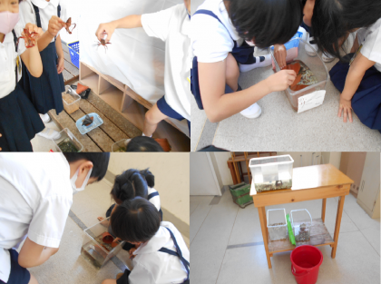 校舎建築中のため、運動場の使用が制限されている今、教室ではどのようにすごしているのでしょうか?2年生をのぞいてみると、両クラスとも廊下でザリガニの世話をしているグループを見つけました。当番でお世話をしているのでしょう。とても、一生懸命仕事をし、愛情たっぷりに飼育しています。3年生の教室をのぞいてみました。トランプのスピード、大富豪、ウノなどのカードゲームや折り紙、消しゴムでバトルなどありました。5年生の教室をのぞいてみました。オセロや将棋を積んで楽しむ児童、読書をしている児童もいました。それぞれ工夫をして遊んでいます。