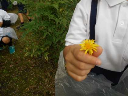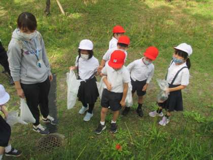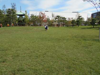 公園の芝生が気持ちよく、バッタなどの生き物、きれいな花、色づく落ち葉などたくさん見つけました。芝生の上、青い空、みんなみんなマスク越しに歓声をあげながら自然と触れた一日でした。