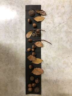 どんぐり、葉っぱ、えだ…秋見つけで採集してきたものを貼って、かんむりをつくりました。果たしてこれは頭にかぶることができるのか!?