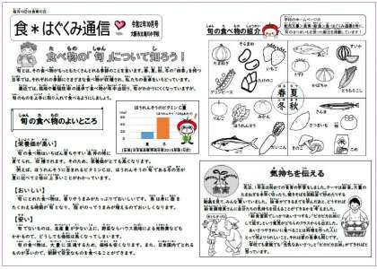 本日配付の「食*はぐくみ通信10月号〜食べ物の旬について知ろう〜」で取り上げている旬の食材「さつまいも」を使った給食献立の紹介記事を配布文書>食育・給食に掲載しています。