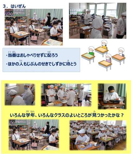 今年度は新型コロナウイルスの影響で、給食時間の様子もずいぶん様変わりしています。他の学年やクラスのよいところを互いに学びながら、よりよい給食時間にしてほしいと思っています。