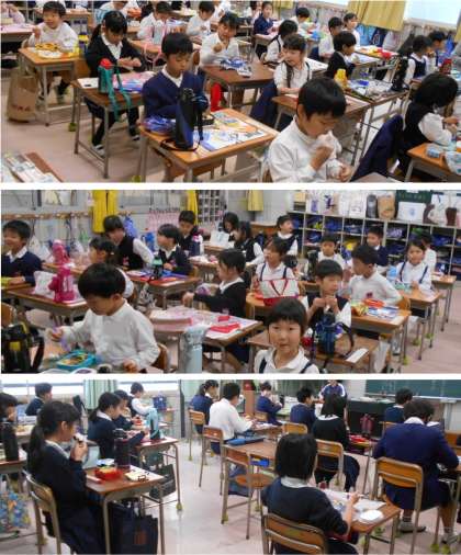 ふれあいオリエンテーリングは、雨で再延期になってしまいました。今日も学校でお弁当です。