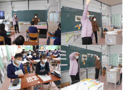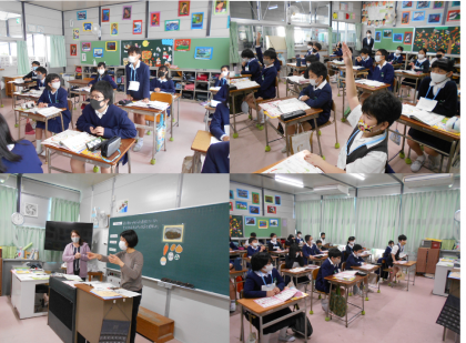 外国語(英語)のUnit6は「食材を通じて世界のつながりを考え、メニューをはっぴょうしよう」が単元の目標です。今日は、食べ物がどの栄養素に分けられるのか、その表現を学習しました。Meat is in the red group. Potetoes are in the yellow group.どこかで学習したような・・・、そうです。これは家庭科や栄養指導で学習した内容です。今日は、Guest Teacherに本校の栄養教諭を迎え、ALTとsmall talkをし、カレーライスの素材について食材のグループ分けを英語で行いました。そのあと、ペアでゲームをし表現を確かなものにしていきました。楽しく学習ができました。