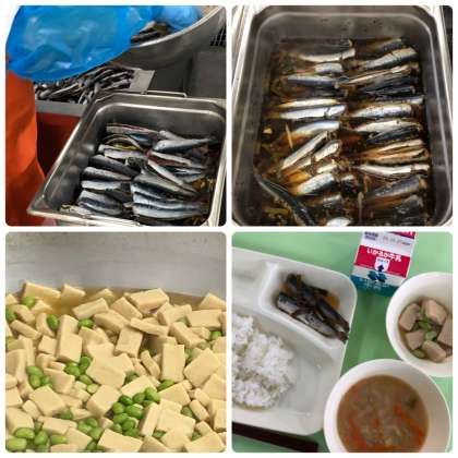 【今日の給食】 いわしのしょうが煮、高野どうふの煮もの