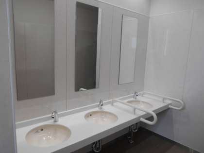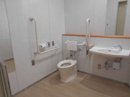 児童がきっと気に入ると思われる場所があります。トイレです。まず、ドライ方式になるので床がきれいなフロアです。鏡も3つあります。扉を開けると、電気がつきます。1階にはオストメイトもあります。ずっときれいに使ってほしいです。