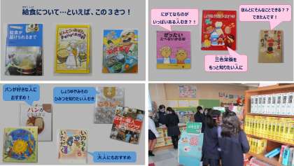 展示されている本以外にも給食や食べ物、栄養の本が図書室にはたくさんあるので、探して読んでみてくださいね。