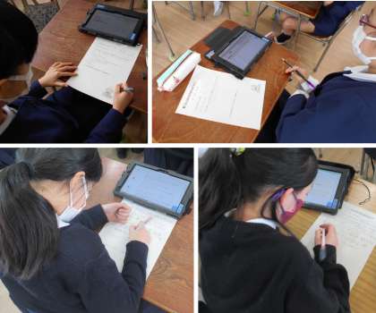 朝ごはんの大切な3つのスイッチについて学んだ後、スクールライフノートに記録している自分の朝ごはんを見ながら、足りないスイッチを入れるためにどんな工夫ができるかを各自で考えました。