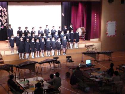 卒業を記念して、教職員のみなさん、保護者の方々、PTAの役員さん方々をお招きして、茶話会を実施しました。先生方のエピソード満載のクイズ、歌・楽器演奏、そして小さかった頃の写真と将来の夢。思い出満載の茶話会でした。