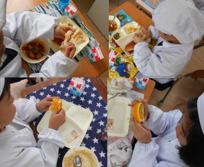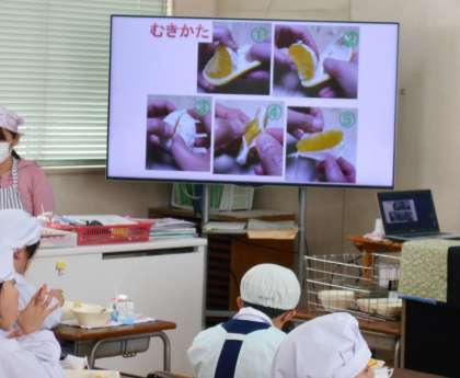 ビタミンCの豊富なあまなつかんなどの中晩柑は、子どもたちにたくさん食べてほしい果物です。最下段の画像「今日の一口メモ」を参考に、ご家庭でもみんなで皮むきにチャレンジしてみてください。