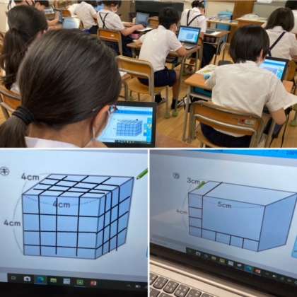 発表ノートに配付された直方体や立方体の形に補助線を入れ、