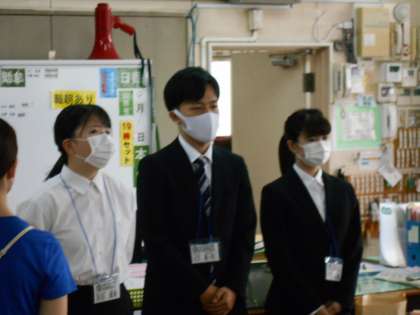 本日から新しく 岡本 浩紀(おかもと ひろき)先生が赴任されています。主に特別支援学級で指導していただく予定です。また、教育実習も始まり、実習生が職員に対してあいさつしました。子どもたちには月曜の朝会であいさつする予定にしています。