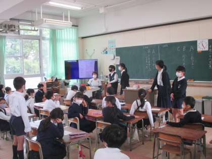 来週のふれあいオリエンテーリングに向けて、ふれあい班(1〜6年生の縦割り班)の顔合わせがありました。
